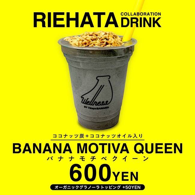 『免疫力向上・腸活・美容』に特化したオーガニックバナナジュース専門店スタンド「Wellness BY 7daysBANANA」とダンサーアーティストとして活躍する「健康・美容」オタクの 「RIEHATA」がコラボレーション。「Wellness BY 7daysBANANA」のオリジナルオーガニックバナナジュースにより一層、健康・美容効果を高めたオーガニックバナナジュース「BANANA MOTIVA QUEEN(バナナ モチベ クイーン」を2021年4月15日(木)〜4月22日(木)の期間、全4店舗(東京表参道・大井町、大阪天王寺、伊勢)にて限定販売いたします。