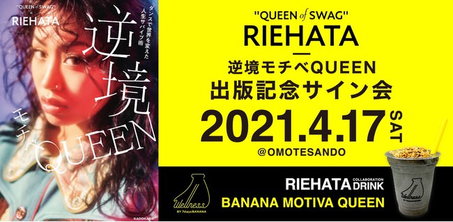 ダンサーアーティスト「RIEHATA(リエハタ)」初の書籍「ダンスで世界を変えた人生サバイバル術 逆境モチベQUEEN」の出店記念サイン会を2021年4月17日(土)に、「Wellness BY 7daysBANANA 表参道店」にて実施いたします。