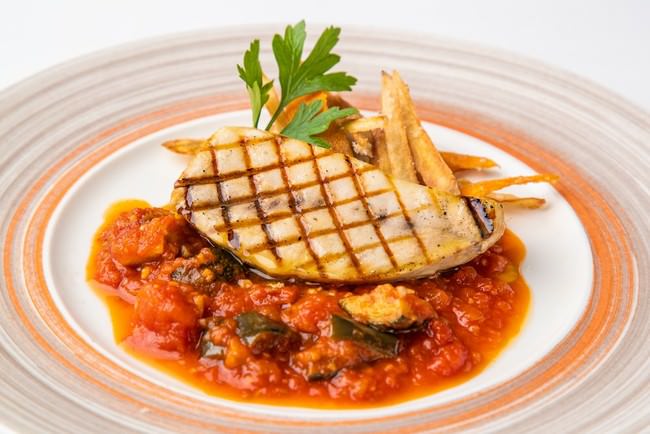 メインは「牛サーロインステーキ オニオンソース」「鴨肉のソテー 赤ワインソース」「ポークグリル ハニーマスタードソース」「カジキマグロのステーキ トマトのケッカソース」の4種類のメインから、お好きなメニューをお選び頂くプリフィクスでご用意。