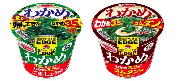 エースコック株式会社(本社:大阪府吹田市 社長:村岡寛)は、2021年5月31日より、「EDGE×わかめラーメン ごま・しょうゆ また×2帰ってきたわかめ3.5倍/コムタン味 わかめ3.5倍」を新発売します。