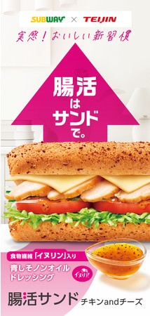 帝人株式会社(本社:大阪市北区、社長:鈴木純、以下「帝人」)と日本サブウェイ合同会社(本社:東京都品川区、社長:角田淳、以下「日本サブウェイ」)は、2021年5月26日(水)より、帝人が展開する水溶性食物繊維「イヌリア」を使用したサンドイッチ 「腸活サンド チキンandチーズ」を、日本サブウェイが展開するサンドイッチ・チェーン『サブウェイ』において販売し、両社共同でプロモーションを展開します。