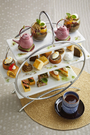 また、“ほうじ茶プリン”は、森乃園で提供している「ほうじ茶パフェ」を当ホテル風にアレンジ。ほうじ茶の優しい味わいと香ばしさが広がるなめらかなプリンに、カラフルな寒天を入れ、味に深みと食感の面白さを出しました。クリームチーズの酸味とほうじ茶の相性の良さに加え、アクセントのオレンジピールの効果で、さっぱり爽やかに食べられる“ほうじ茶とチーズのタルト”など今年の新作も、和と洋のハーモニーをお楽しみいただけるラインナップです。