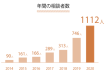 2010年より「ホームレス状態を生み出さない日本」を目指し、ホームレス状態の方や生活困窮者を対象に仕事や宿泊施設の提供、相談事業などを行っており、サイクルシェア・HUBchari事業を中心に当事者の特技を生かした仕事づくりにも力を入れています。コロナの影響で相談者は増え続けており、2020年度は年間1112名の新規相談がありました。