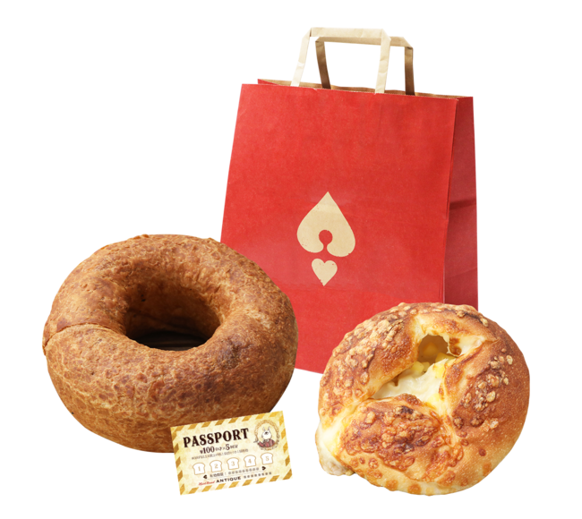 ・内容:「マジカルチョコリングMサイズ」1個、「のび〜るとろりんチーズフランス」1個、500円分のパスポート1枚(100円引き×5回分)をセットにしました。アンティークの人気商品を一度にご賞味いただける豪華なセットです。