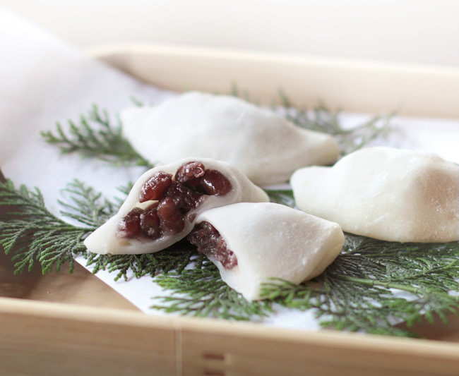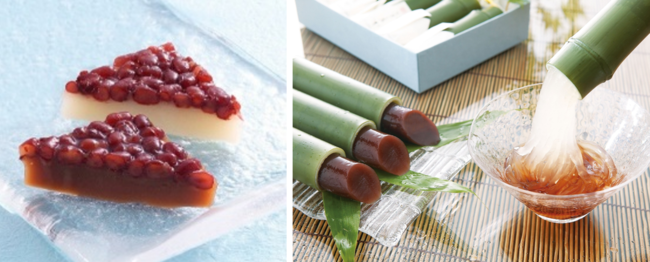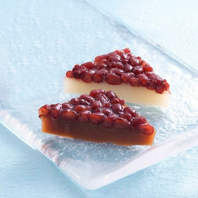 京都の名産品であり縁起菓子の「水無月」。6月下旬、無病息災を願い神社の茅の輪をくぐる「夏越祓」。この「夏越祓」に氷を食べ、暑い夏を越そうという宮中行事がありました。庶民には高級品だった氷を入手することはできないことから、その代わりとして氷に似たお菓子を食べることによって、夏バテ予防をすることになりました。ういろうの三角形の形で氷を表し、赤い小豆は邪気払いや悪魔祓いという意味が込められています。