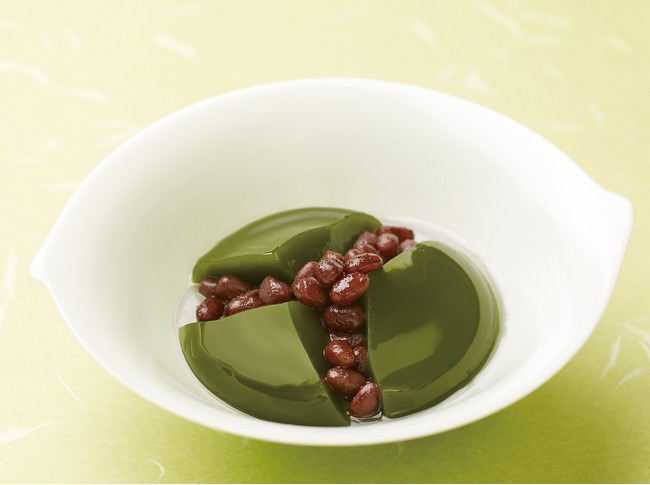 抹茶葛・ふっくら小豆・透明ゼリーの3層で仕立てた和のデザート。