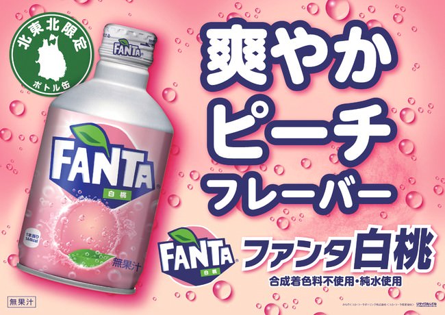 みちのくコカ・コーラボトリング株式会社(本社: 岩手県紫波郡矢巾町、代表取締役社長: 谷村 広和)は、フルーツ炭酸飲料カテゴリーNo.1※「ファンタ」ブランドから「ファンタ 白桃」300mlボトル缶を、6月14日(月)から発売します。300mlボトル缶は、北東北(青森県、岩手県、秋田県)限定での販売です。