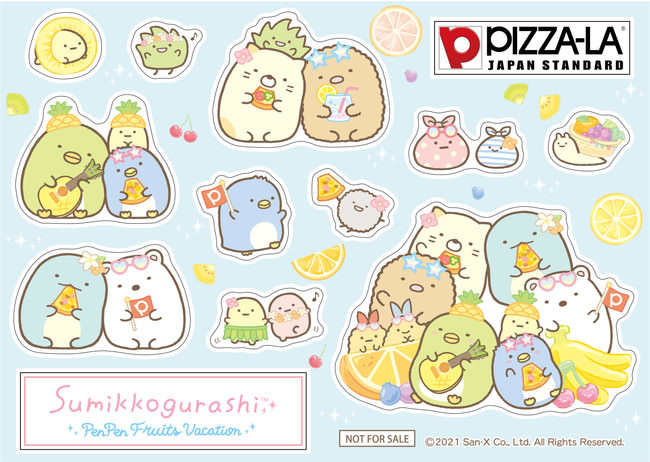 すみっコの仲間たちと一緒に、ピザを食べて夏のバケーション気分をお楽しみください。