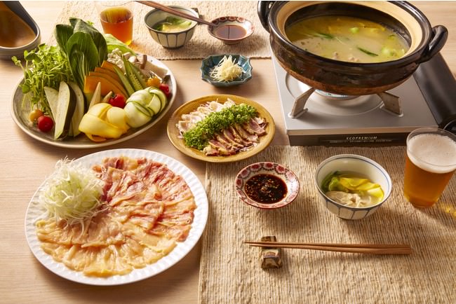 契約農家が丹精込めて育てた「黒さつま鶏」を、「黒さつま鶏」の濃厚なガラスープで召し上がっていただくセットです。地鶏は、流通する鶏肉のうちわずか1%と言われています。その中でも、塚田農場の地鶏はオス120日・メス150日もの長期にわたって育成しているため、弾力があり旨味の詰まった肉をお楽しみいただくことができます。よく運動している鶏のため、しゃぶしゃぶする時間は2~4秒を推奨しています。一緒に食べたい野菜だけご用意ください。