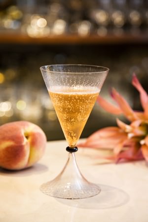 絞りたての旬な桃を贅沢に使用したシャンパンカクテル。