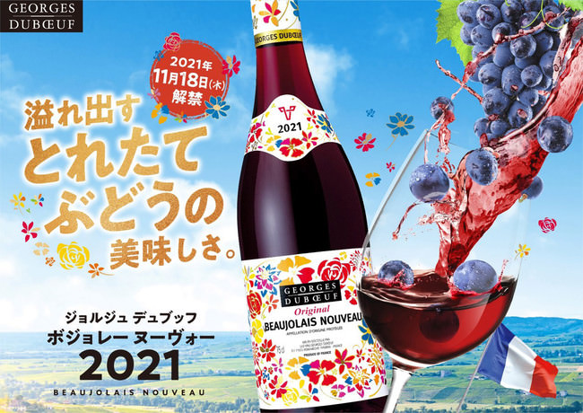 サントリーワインインターナショナル(株)は、「ジョルジュ デュブッフ ボジョレー ヌーヴォー 2021」など、フランス産新酒ワイン10種を11月18日(木)から全国で新発売します。