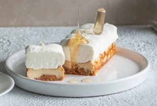 ゴルゴンゾーラを使用したチーズケーキに3種類の生クリームを独自でブレンドし、たっぷりと絞りました。表面にトッピングしたスポイドには色と風味にこだわった蜂蜜のシロップが入っており、かけてお召し上がり頂くことでチーズの味わいをより一層引き立たせてくれます。