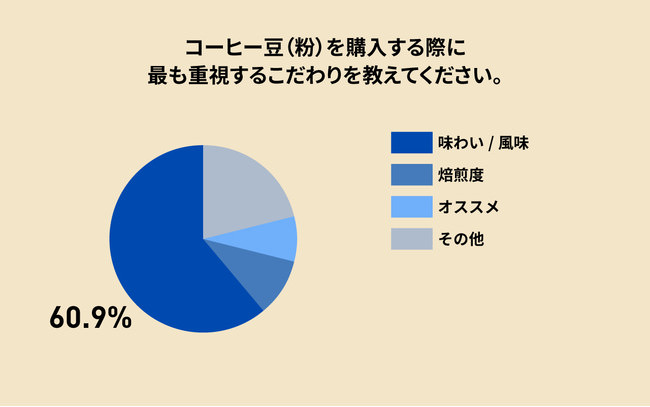 ・60.9%がコーヒーの選択基準は「味わい/風味」と回答。