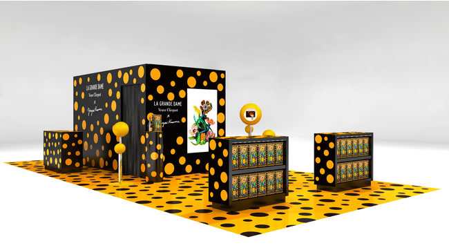 ヴーヴ・クリコと草間彌生氏が織りなすクリコイエローに彩られた空間を、どうぞお楽しみください。