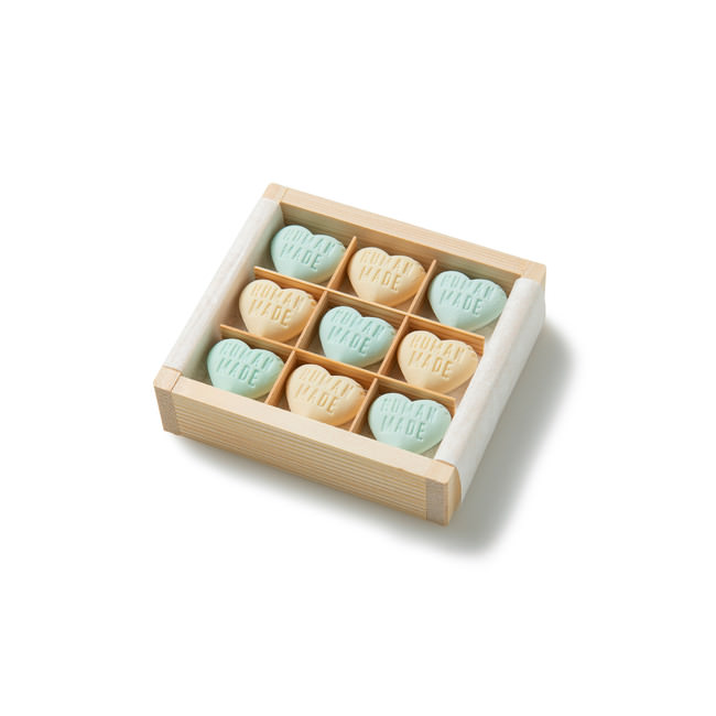 今年5月の「HUMAN MADE 1928 Cafe by Blue Bottle Coffee」オープンの際にも人気になった、江戸中期享保年間から続く京都祇園の和菓子屋「鍵善良房」とコラボレートしたコラボレーション和三盆。今回「HUMAN MADE Cafe by Blue Bottle Coffee 」のオープンを記念し、「HUMAN MADE」のハートモチーフ型の和三盆に、ブルーボトルのロゴカラーであるブルーを取り入れた和三盆は、味はもちろん見た目にも楽しいお菓子となりました。