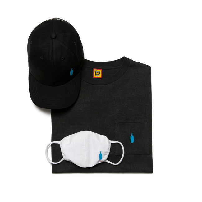 「HUMAN MADE Cafe by Blue Bottle Coffee 」のオープンを記念し、「ブルーボトルコーヒー 渋谷カフェ」と「ブルーボトルコーヒー 公式オンラインストア」では、コラボレーションアイテムを7月21日(水)に数量限定発売します。「ブルーボトルコーヒー 渋谷カフェ」オープンの際に大変ご好評をいただいたTシャツとキャップの新色と、ブルーボトルのロゴがさりげなく入ったマスクは、シンプルでデイリーにもご使用いただきやすいデザインです。