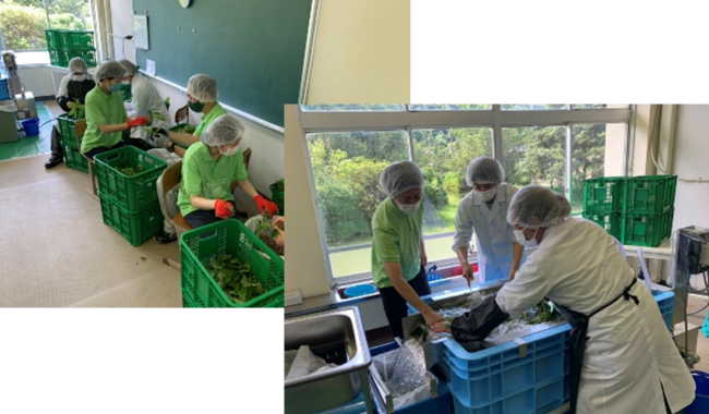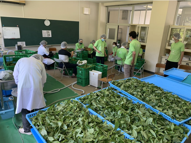 称「モロヘイヤ協定」)を締結いたしました。この「モロヘイヤ協定」に基づき、モロヘイヤの洗浄・乾燥を行う工場「上郡モロ工場」を開設いたしました。工場は、2012年に廃校となった旧鞍居小学校を活用しています。