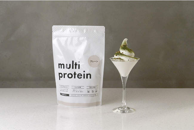 コラボパートナーの「multi protein(マルチプロテイン)」は「溶けやすい」「美味しい」「栄養が摂れる」が特長で、飲食店としても取り扱いが容易で、味にも癖がないため、一般に販売されている「プレーン」をそのまま原料として採用しています。