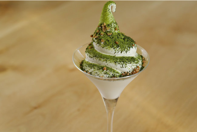 高品質な一番茶の粉末茶を贅沢に使い、ミルク本来の自然な甘さやコクと、厳選緑茶の清涼感が溶け合うCRAFT TEA自慢のソフトクリーム。トッピングのオリジナルブレンドの茶葉と玄米あられが食感のアクセントになっています。