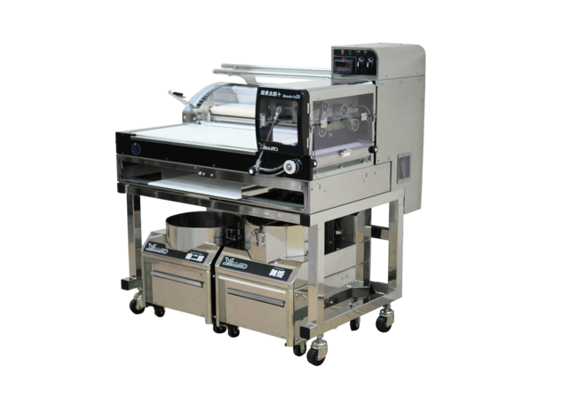 しかし「坂東太郎プラス」にセットされている「舞姫」、「菊二郎」、そして、本体の圧延装置を使えば、手打職人が十割蕎麦を打つさまをすべて機械で簡単に再現できるため、修行を全くしていない、パートの女性でも簡単に美味しい十割蕎麦を打つことができるようになりました。これは、まさに“蕎麦打ち革命”と言えるものです。