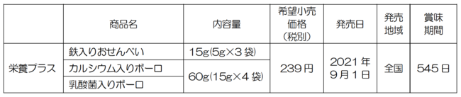 雪印メグミルクグループの雪印ビーンスターク株式会社(本社:東京都新宿区 代表取締役社長:内田 彰彦)は、生後9か月頃からのベビーおやつ「栄養プラスシリーズ」3品(「栄養プラス 鉄入りおせんべい」「栄養プラス カルシウム入りボーロ」「栄養プラス 乳酸菌入りボーロ」)を、2021年9月1日より新発売いたします。