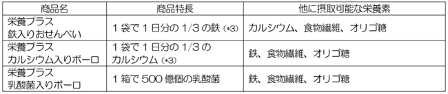 本シリーズは、お母さんのお子さまへの栄養に対する意識調査の結果(*1)をもとに、お子さまに与えたい栄養素や成分である(*2)「鉄」、「カルシウム」、「乳酸菌」、「オリゴ糖」、「食物繊維」を配合した赤ちゃん向けのサプリメントおやつです。発育時に必要な栄養素を手軽に摂ることができる「栄養プラスシリーズ」は、赤ちゃんのすこやかな成長を応援します。