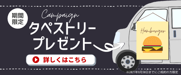 キッチンカーの製作および開業支援サービスを行う「MYキッチンカー」では、2021年8月1日~2021年9月30日より期間内に成約した方限定で「タペストリー」プレゼントキャンペーンを実施します。