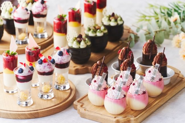 店内に一歩入れば、思わず写真を撮りたくなるかわいらしいスイーツがたくさん並ぶ、毎週金曜日限定のお楽しみ「フライデースイーツブッフェ」も、“エキゾチック”がテーマです。スイーツだけでなく、サンドイッチやパンなどの軽食やドリンクもお楽しみいただける、大満足のスイーツブッフェです。