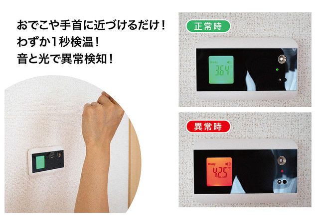 検温はおでこ・手首を赤外線センサーに近づけるだけ。