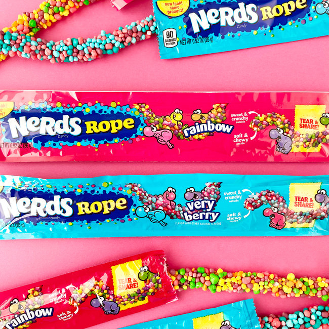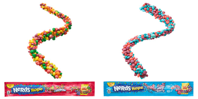 とにかくインパクト大!な「ナーズ ロープ」。細長いロープ形状のフルーツ味グミに、カラフルなラムネキャンディが大小ぎっしりと密着しています。食べてみると、ラムネキャンディの「カリッ」「ポリッ」とたのしい食感でさわやかな風味がひろがったあと、内側に隠れたフルーツ味グミの弾力と甘みが存在感をあらわします。