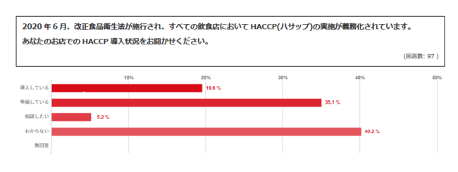 2021年5月現在で、HACCPを「導入している」飲食店は約20%!「準備中」は35%、45%は「相談したい」「わからない」と回答。