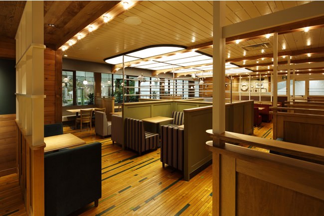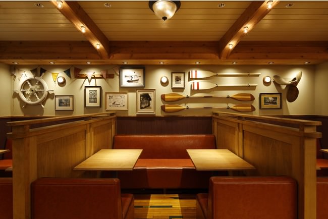 店内はくつろぎのボートハウスの様なウッディーで落ち着いた雰囲気。