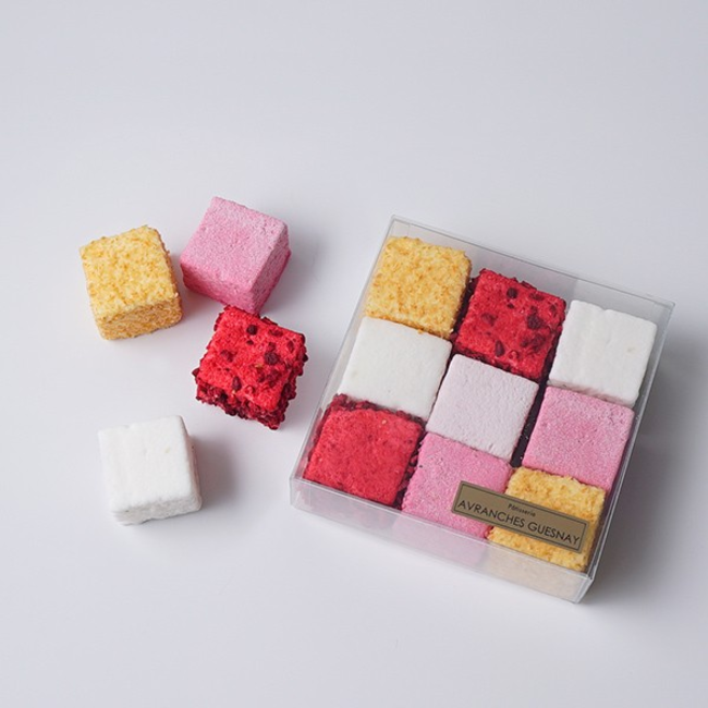 今回Cake.jpでは、「Avranches Guesnay」の中でも特にギフトとして大人気の2商品を販売いたします。「ギモーヴ」はフルーツピューレとゼラチンを使用した、口の中でとろけるような食感が特徴のフランス菓子です。「ジュレと焼き菓子の詰め合わせ」は「Avranches Guesnay」自慢の焼き菓子とジュレを各種用意した詰め合わせボックスで、Cake.jp限定販売です。