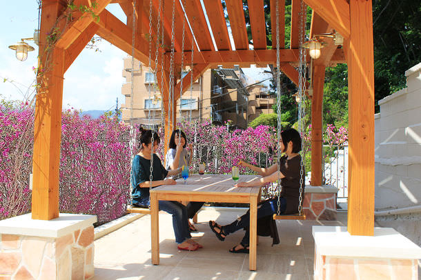 1階テラスではゆらゆら揺られながら休憩できます♪