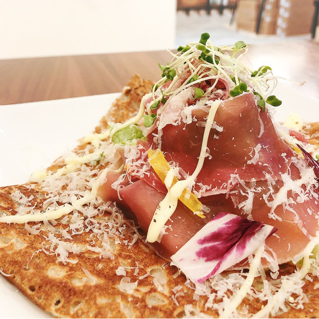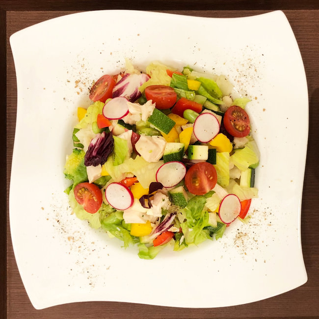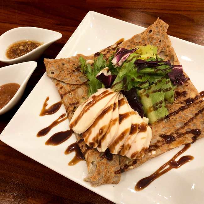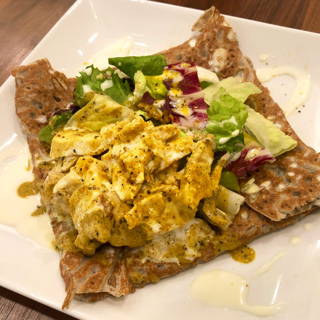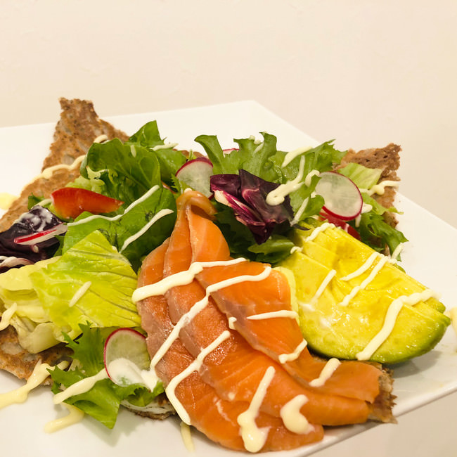 具材が生地からはみ出るほど盛られたガレットと、運ばれてきたときに写真を撮りたくなるような見た目も楽しめるサラダです。