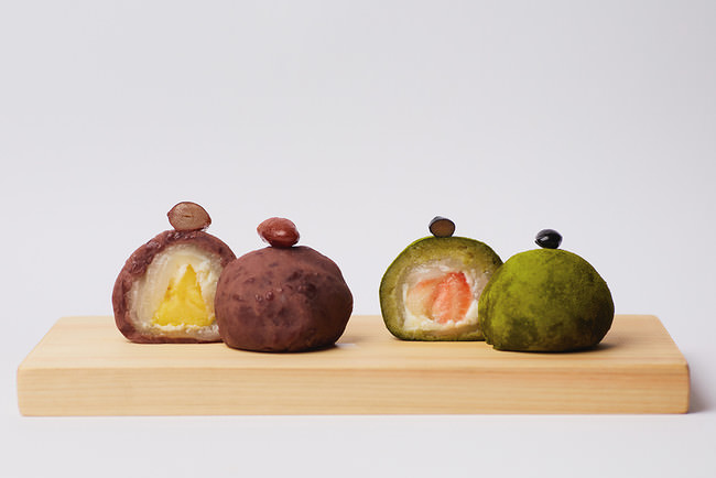 一般的なおはぎと異なるのは、フルーツやナッツ、マスカルポーネチーズを使用し、和菓子の伝統に洋菓子のエッセンスを加えていること。