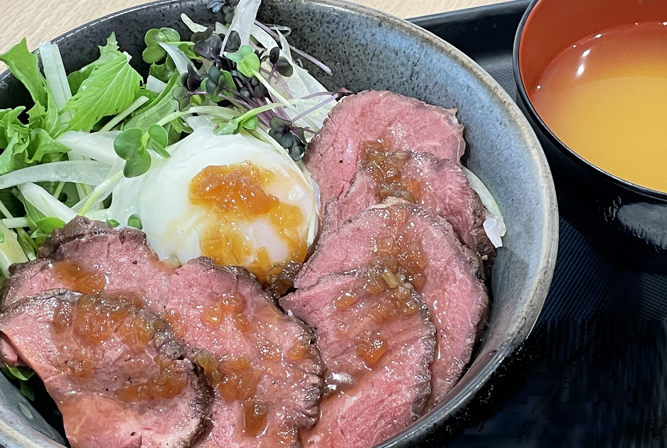 ・温玉のせローストビーフ丼をご注文の方に、通常200円追加の肉増しを