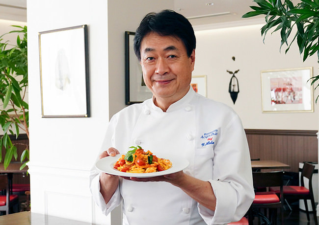 独自のイタリアンのスタイルを構築すべく、最も感銘を受けた料理の名前をつけた「Ristorante ACQUA PAZZA」を1990年に西麻布にオープン。現在は、南青山に場所を変え、2020年には30周年を迎えました。
