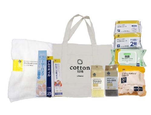 お買物やお出かけに便利なトートバッグとご家庭でご利用いただける日用品、合計10点セットです。