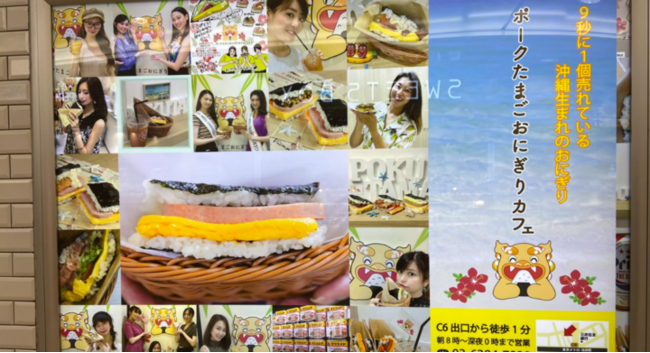 - 『ポークたまごおにぎりカフェ』のおにぎりはスパムと玉子焼きをご飯で挟む ポークたまごおにぎりに高菜やエビフライなど様々なトッピングが用意されていて数多くのバリエーションが楽しめるお店になっており季節商品やご当地名物などのコラボ等も行っており、フランチャイズ店舗では出店エリアのご当地名物やオーナー独自のトッピングを取り入れることが可能になります。