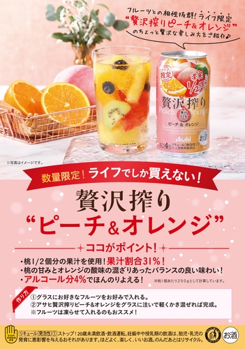 ライフでしか手に入らない「アサヒ贅沢搾りピーチ&オレンジ350ml」は、ライフ279店舗にて数量限定で販売しております。