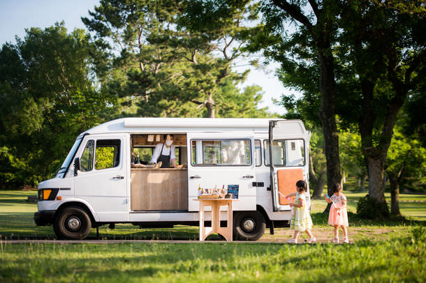 「シェフズキャラバン ヨコヅケ」は、レストラン並みの厨房設備を備えたキッチンカーでプロの料理人が自宅までやってきます。車内で調理された出来立ての料理をリビングや庭など好きな場所で食べることができるのが特徴です。