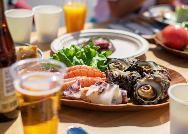 ピアBandai会場のピーカンテラスでは、開港5港のクラフトビールとぴったりなBBQも楽しめます。BBQの他にもバーガーやカレーなど映えるフード盛りだくさん!