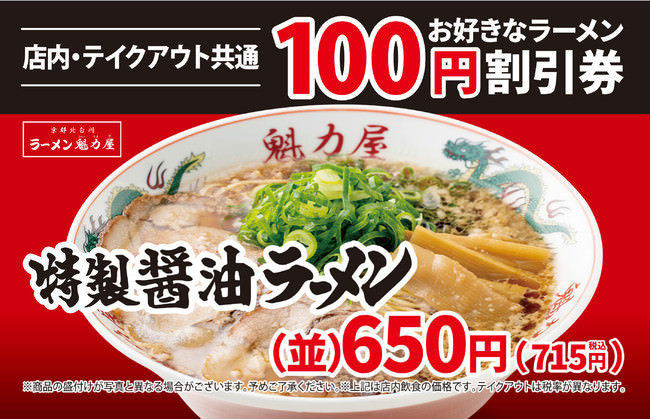 魁力屋は暑い夏も元気に営業中。店内ではお好きなラーメン100円割引券も配布しています!(※店内飲食、テイクアウト利用可能)次回ご来店時からご利用いただけます。