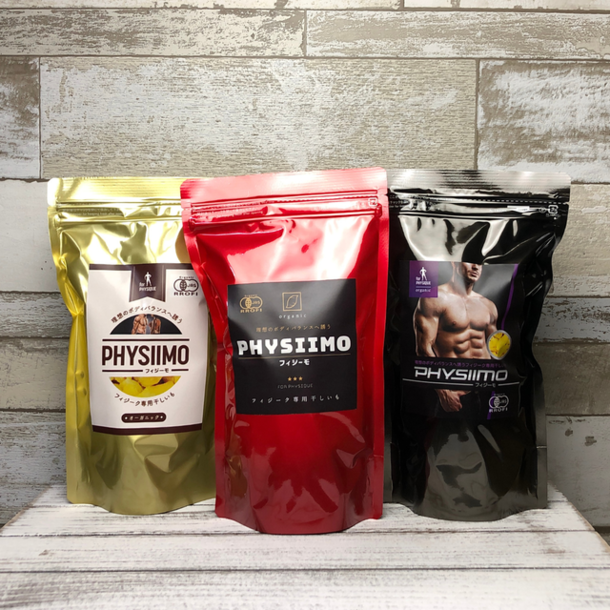 特徴:「赤ちゃんでも安心して食べられるオーガニック干し芋」を基本コンセプトに、現役フィジーカー18名のアドバイスを受けて開発。食べやすく、持ち運びやすい小分け包装を採用し、トレーニング前後の炭水化物(カーボ)の補給と量のコントロール容易にしました。