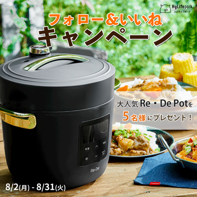 日本のお客さま向けにこだわりのおいしい豚肉「ハイライフポーク」を生産している北米の豚肉生産者ハイライフ社(HyLife社)。このハイライフポークの国内マーケティング活動を推進する株式会社HyLife Pork Japan(東京都渋谷区)では、8月2日(月)より当社インスタグラムアカウントにて大人気の電気圧力鍋「Re・De Potが当たる!インスタグラムキャンペーン」インスタグラムキャンペーンを実施します。