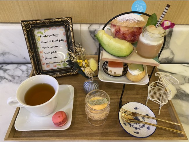 みなとみらい駅直結、東急スクエアB1Fの「横浜スパゲティ&カフェ」では、8月4日(水)より【旬の桃とメロンたっぷりのアフタヌーンティーセット】を販売します。