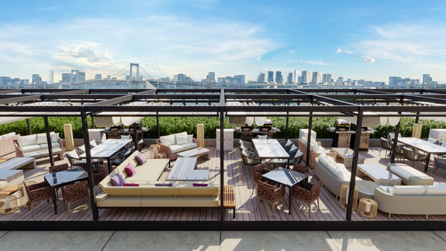 人気の「THE BBQ BEACH」シリーズが今回オープンするのはアクアシティお台場の屋上スペースです。アーバンリゾートスタイルにリニューアルし、海外ビーチリゾート風のラグジュアリーなBBQ空間として生まれ変わりました。都心部にいながらにしてリゾート感を満喫して頂ける空間が広がっています。