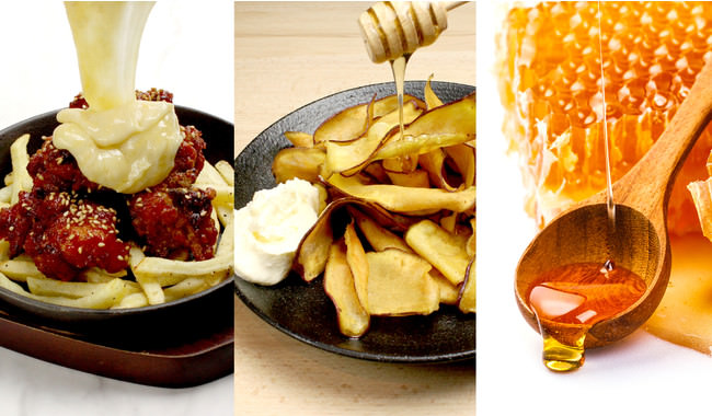 北海道産フレッシュチーズと本物の生はちみつ本来の味が楽しめる『生はちみつとフレッシュチーズの5種盛り』をはじめ、「パネ」(韓国語で「バゲット」という意味)の器に入ったチーズに、チキンと生はちみつを絡めて食べる『パネチキン』ヤンニョム(薬味)を絡めて味付けした甘辛チキンにとろ〜りラクレットチーズを滝のように流し込み、生はちみつでアクセントをつけた『ヤンニョムチキンボルケーノ』クリームチーズと生はちみつをディップしていただく『さつまいもハニーチップス』など…チーズと生はちみつの絶妙な組み合わせが楽しめるメニューをご提供いたします。