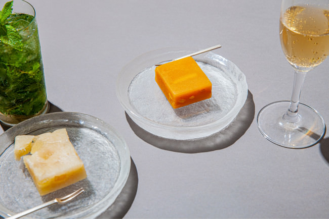 「マンゴーとマンゴーのヨウカンカ」は、「お茶と酒 たすき」の夏の人気商品「アップルマンゴーのかき氷」を羊羹で表現しました。一口食べると濃厚な甘さが広がり、追いかけてくるように爽やかな酸味を感じます。暑い季節にもおすすめのテイストです。